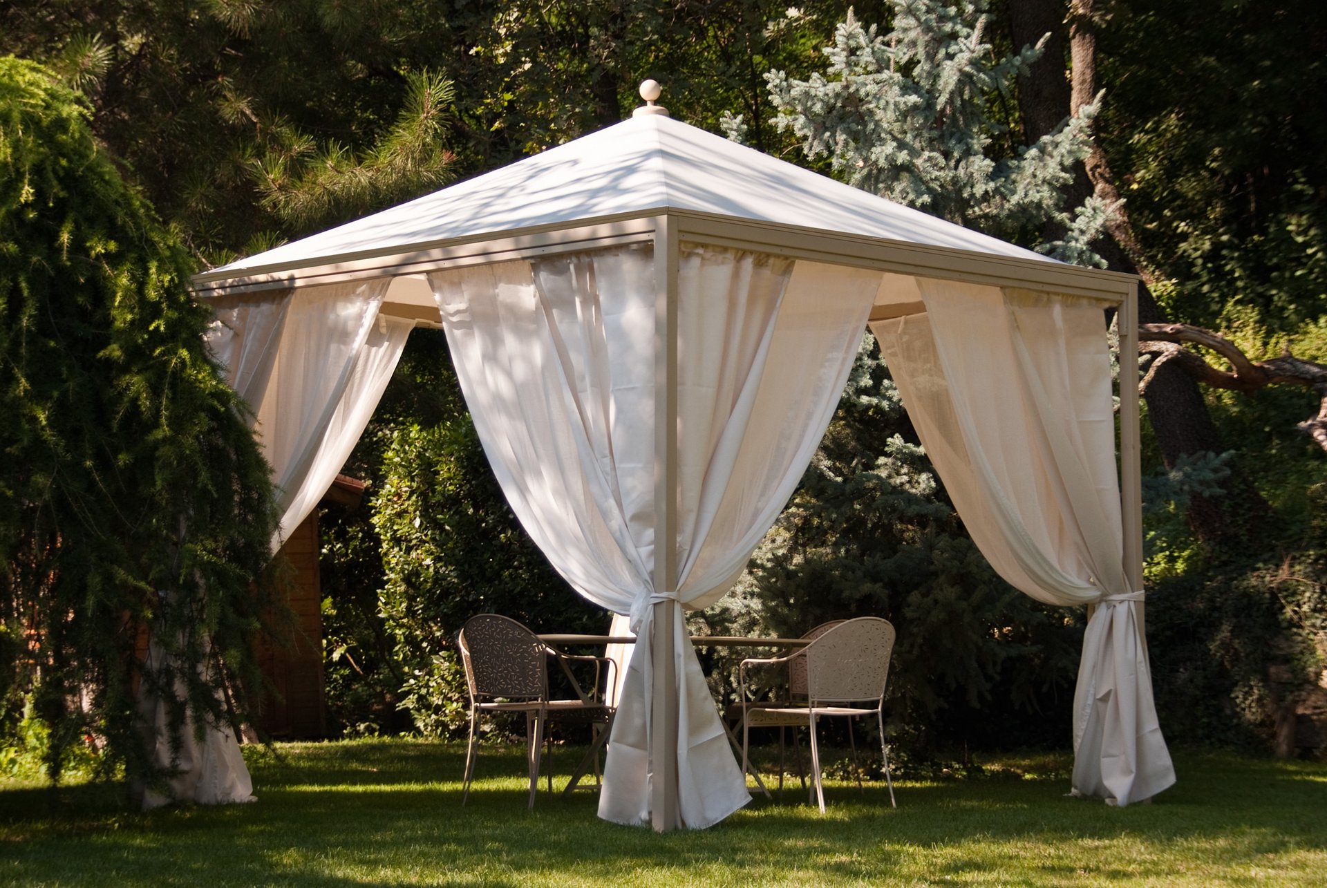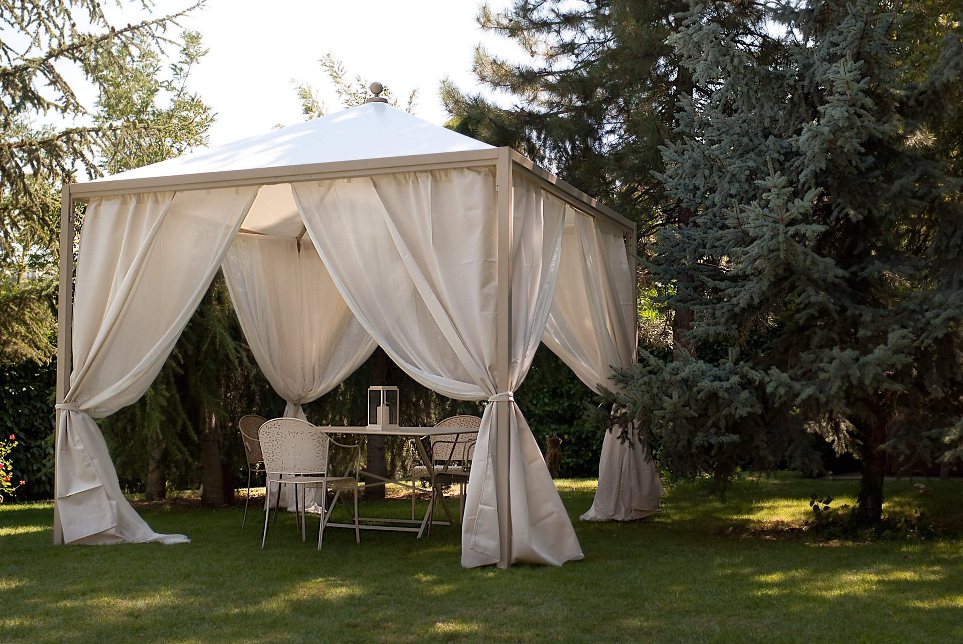 Dieser Pavillon hat klare Linien und ist so dimensioniert, dass er Flächen bis zu 6 x 6 m abdeckt. Es eignet sich sowohl als Location für Wohnraum als auch für einen Pavillon als Geschäftsraum.