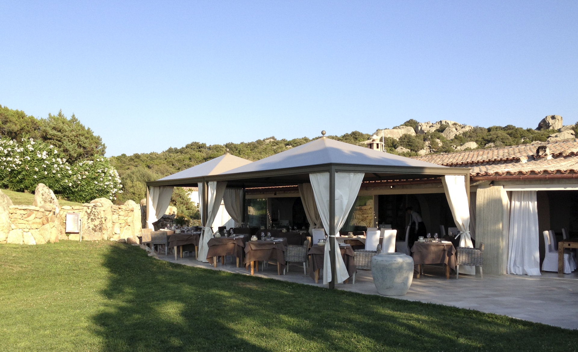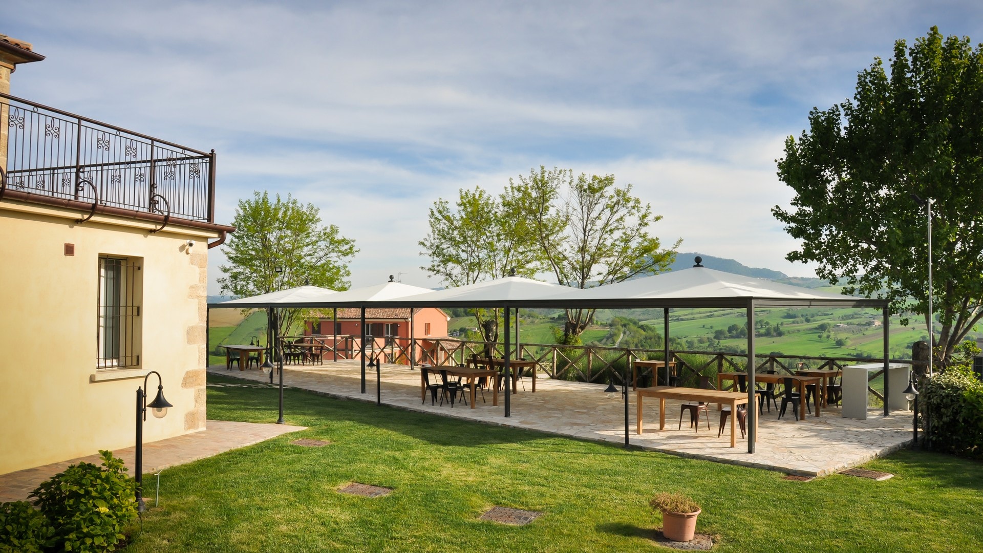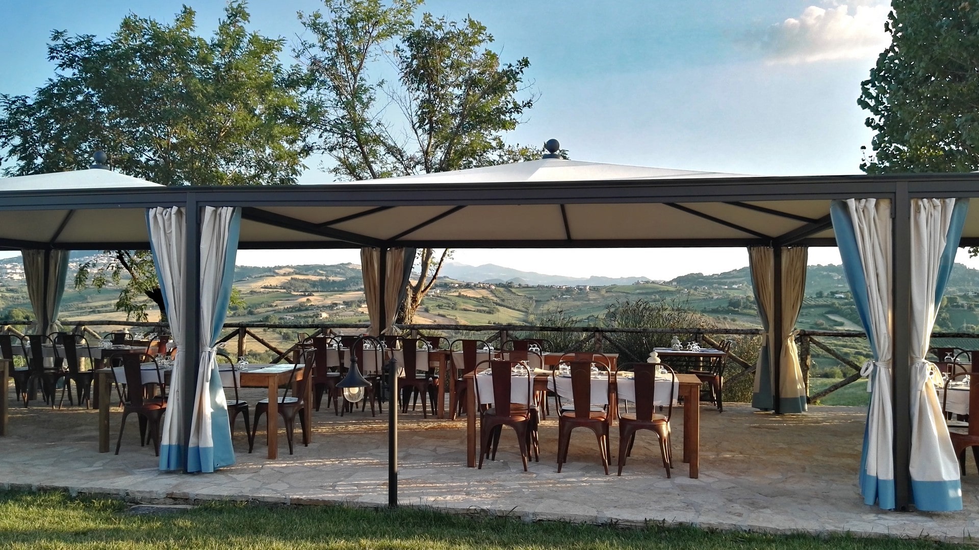 In technischer Hinsicht zeichnet sich Ottoemezzo durch sein System zur Ableitung des Regenwassers und die Befestigung mit Gewebe aus.